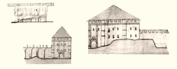 Отдельные башни, интересные архитекторам с точки зрения возможностей использования их помещений как объектов капитального строительства, традиционно изображались более подробно. Как видно на чертежах 1785 г (рис. 2), башни получают симметричные планы и фасады, подчас не учитывающие подлинную архитектуру крепости.