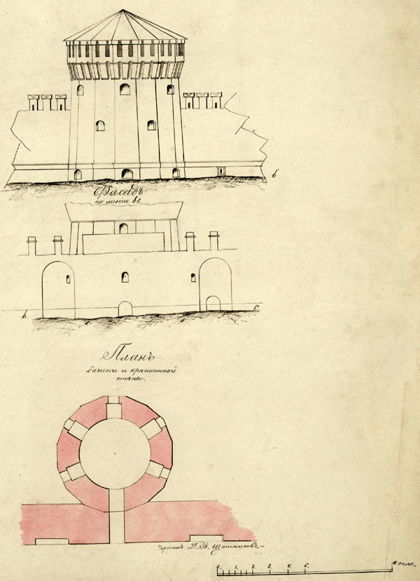Рис. 6. Чертеж башни крепости к заседанию Императорской археологической комиссии 18 февраля 1909 г. –
