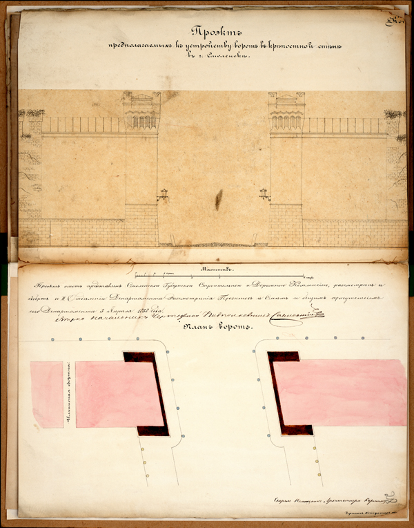 Рис. 5. Проект предполагаемых к устройству ворот в крепостной стене в Смоленске (Ильинский пролом).