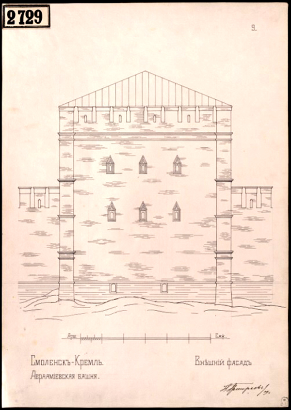 Рис. 7. Григорьев Н.К. Обмер Авраамиевской башни Смоленского Кремля. Внешний фасад