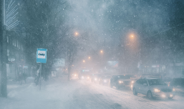 Рис. 4. Проспект К. Маркса в зимний день в условиях метели.
