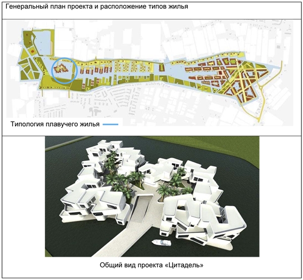 Рис. 3. Генеральный план таунхаусы на сваях и плавучие дома района Айбург.