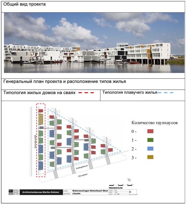 Анализ четырех проектов позволяет обобщить характеристики трех основных типов плавучей жилой архитектуры, выявленных в Нидерландах (табл. 2).