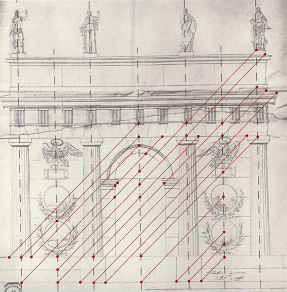 Рис. 11. Соединение характерных точек фасада Триумфальной арки архитектора Чарлза Камерона