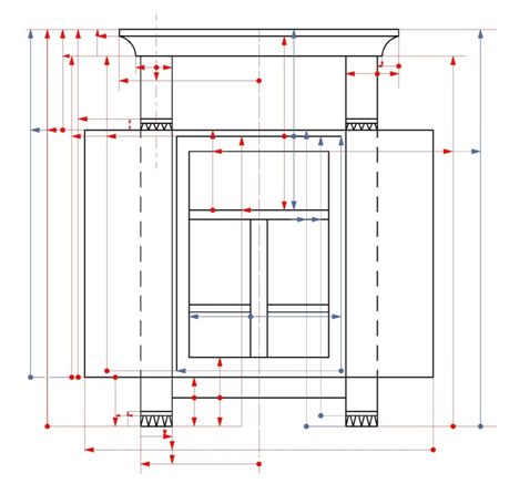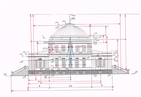 Рис. 12. Проявление главного ордерного отношения в системе размеров фасада. Автор А.В. Долгов