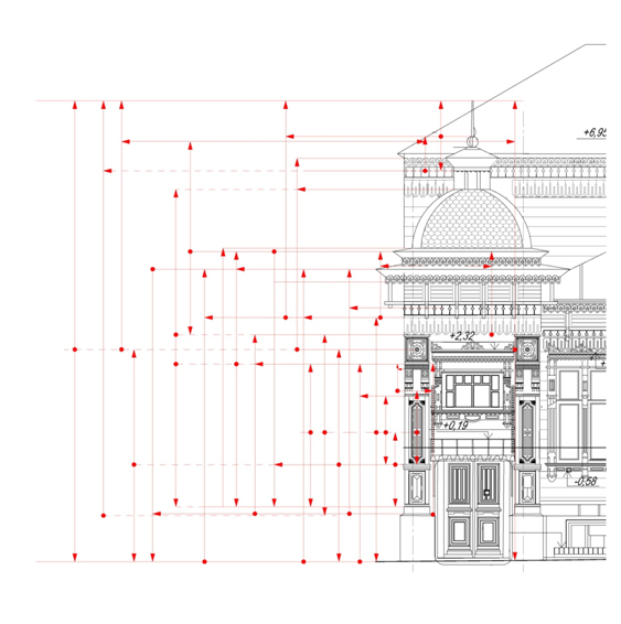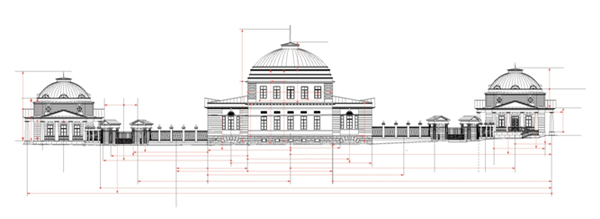 ординации 6:5 в формах плана восточного павильона. Автор А.В. Долгов