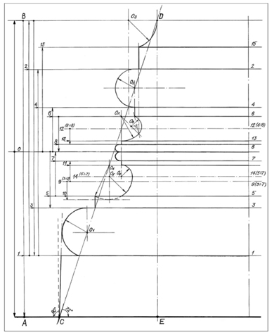 Рис. 14. Ординаты крайних и средних делений пропорций с коэффициентом