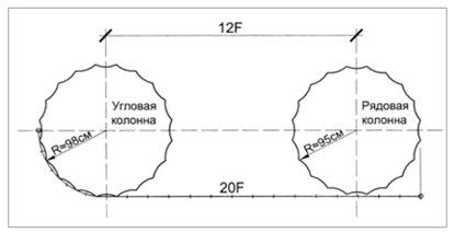 Рис. 4. Использование величины периметра основания угловой колонны и фута (F)