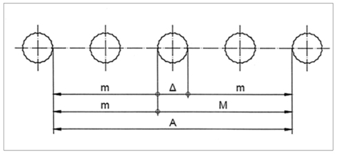 Рис. 8. Величины А, М, m и ∆ длинной стороны перистиля Парфенона. Автор А.В. Долгов