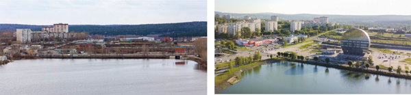 Рис. 2. Панорама исторической территории Васильево-Шайтанского завода в Первоуральске до 2016 г. (слева).