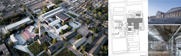 Пример преимущественного сохранения промышленной застройки представлен в реновации завода дизельных двигателей в Пинъяо, Китай под комплекс проведения Международного кинофестиваля (рис.4). Кинофестиваль требует масштабных общественных пространств, типичные индустриальные корпуса завода оказались удобны для его мероприятий. Авторами сохранены четыре оригинальных здания завода. Новые объекты спроектированы в минимальном объеме для создания акцентов и обозначения специфики кинофестиваля, например кинотеатр под открытым небом. Историческая промышленная архитектура добавляет неповторимую ауру этому кинокомплексу и представляет собой органичное единство исторической архитектуры и новых духовно-культурных смыслов, вдохнувших новую жизнь в промышленный объект.