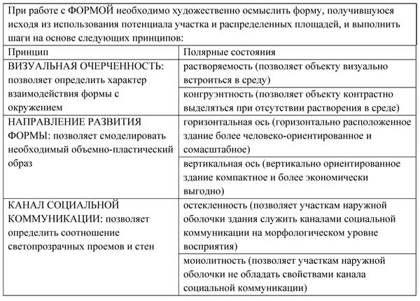 III. ФОРМА (ФОРМА АРХИТЕКТУРЫ) формируется через следующие принципы (табл. 3).