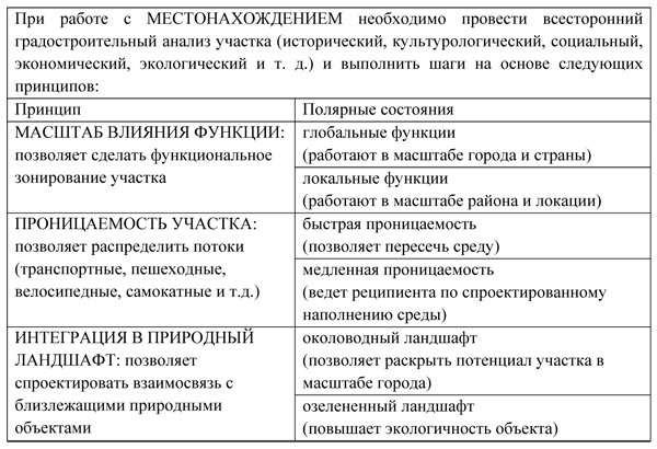 I. МЕСТОНАХОЖДЕНИЕ (ФИЗИЧЕСКОЕ ПОЛОЖЕНИЕ АРХИТЕКТУРЫ) формируется через следующие принципы (табл. 1).