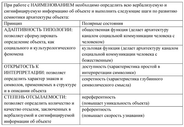 IV. НАИМЕНОВАНИЕ (ВЕРБАЛИЗУЕМОСТЬ И СИГНИФИЦИРУЕМОСТЬ АРХИТЕКТУРЫ) формируется через следующие принципы (табл. 4).
