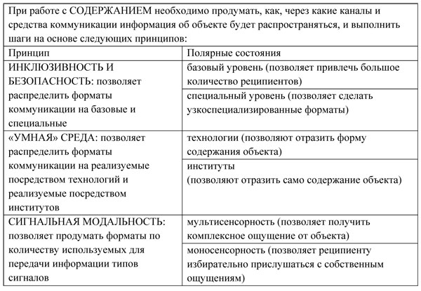 V. СОДЕРЖАНИЕ (ФОРМАРЕПРЕЗЕНТАЦИИ АРХИТЕКТУРЫ) формируется через следующие принципы (табл. 5).