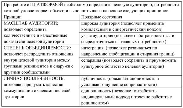 VI. ПЛАТФОРМА (СОЦИАЛЬНЫЙ БАЗИС АРХИТЕКТУРЫ) формируется через следующие принципы (табл. 6).