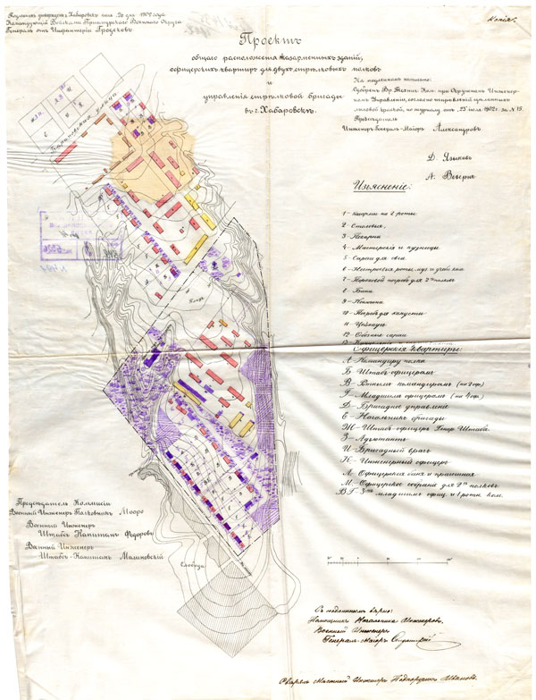 1РГВИА. Ф. 349. Оп. 41. Д. 491. Проект расположений казарменных зданий и офицерских квартир для двух стрелковых полков и управления стрелковой бригадой в г. Хабаровске. 1902 г.