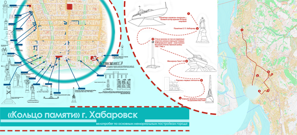 Рис. 6. Схема символических пространств Хабаровска с предполагаемые веломаршрутом «Кольцо памяти»