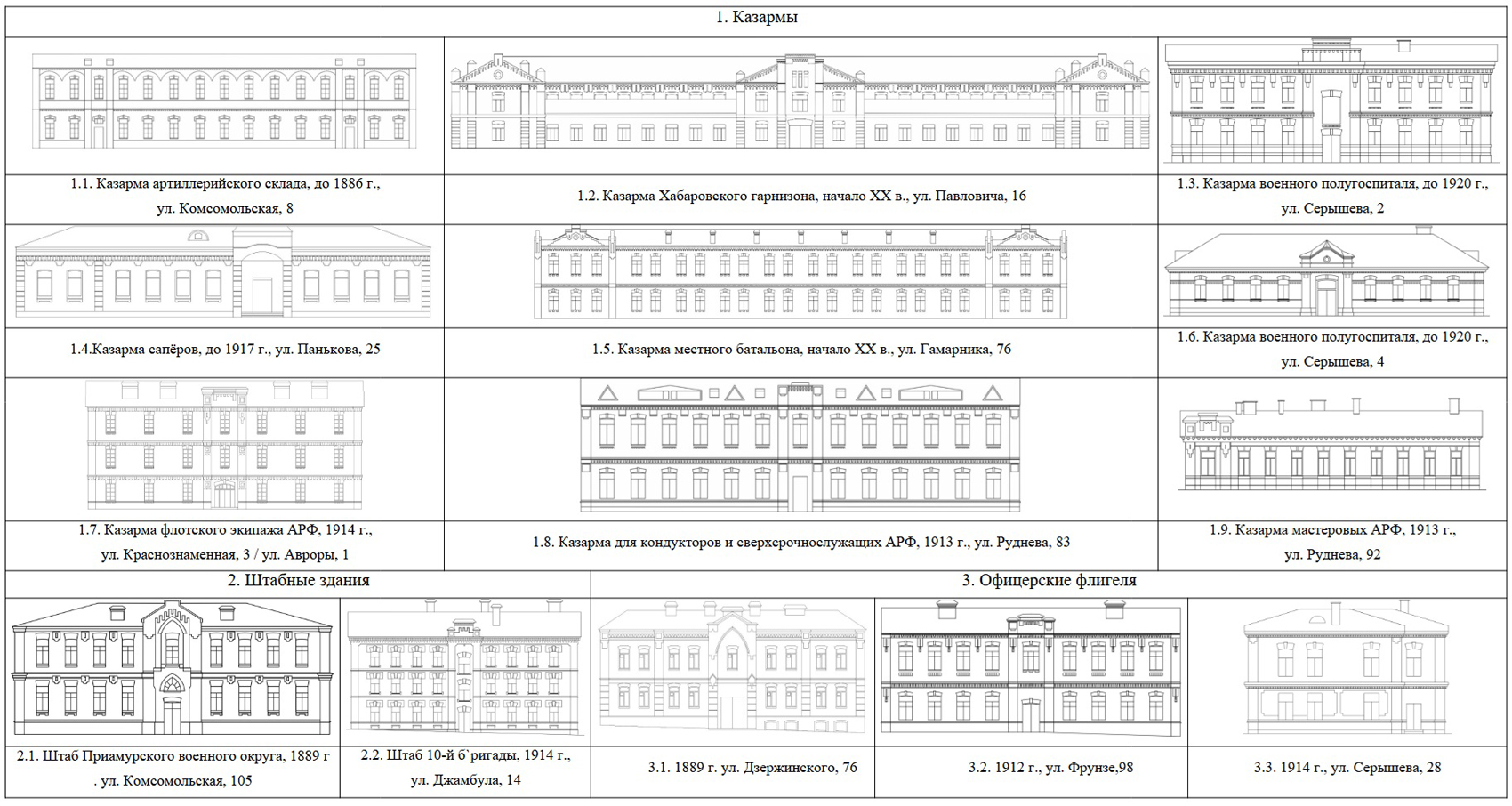 «Красные казармы», которые дальневосточники считают уникальной и ключевой особенностью регионального архитектурного ландшафта, сохранились во многих русских городах от Санкт-Петербурга до Иркутска и являются убедительным примером единой «гарнизонной эстетики» общегосударственного значения. Региональные особенности гарнизонной архитектуры рассматривались нами ранее [6].