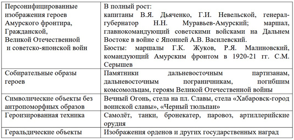 В результате исследования темы служения и защиты Отечества в культурном ландшафте Хабаровска на градостроительном, архитектурном и символическом уровне выявлены:
