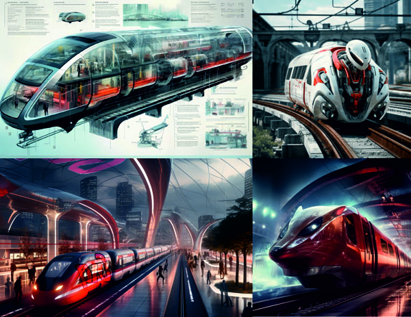 На данный момент ИИ в сфере генерации изображение железнодорожного транспорта скорее руководствуется принципом проектирования «форма определяет функцию», потому что при первом просмотре картинка удивляет, но при тщательном анализе можно понять, что, кроме эстетической ценности, картинка ничего не содержит (рис. 1).