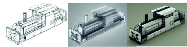 Рис. 5. Сгенерированные изображения тепловоза (1, 2) на основе рендера путевой техники Rail Technology (3).