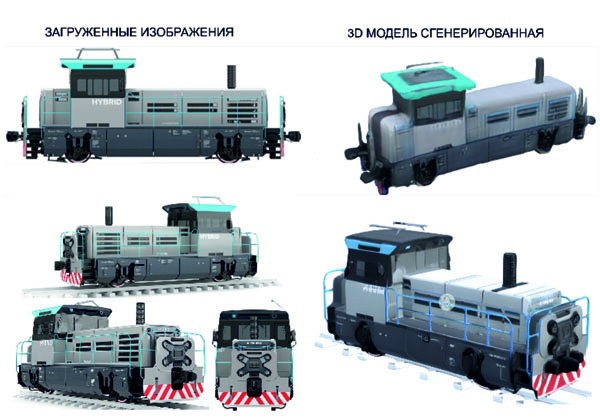 Рис. 6. 3D-модели, созданные нейросетью на основе рендеров ТЭМ5Х.