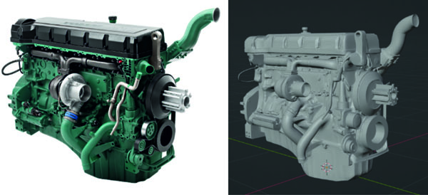 Рис. 7. Составлено К.И. Леоновым на основе рендера двигателя Volvo и сгенерированной 3D-модели.