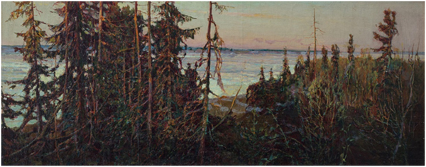Рис. 1. Б.Я. Ряузов. «Туруханская тайга». 1950. Х., м. 41x100. Собственность семьи художника