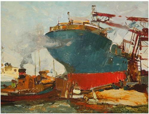 Рис. 4. Б.Я. Ряузов. «Работы в затоне (в Доке)». 1968.