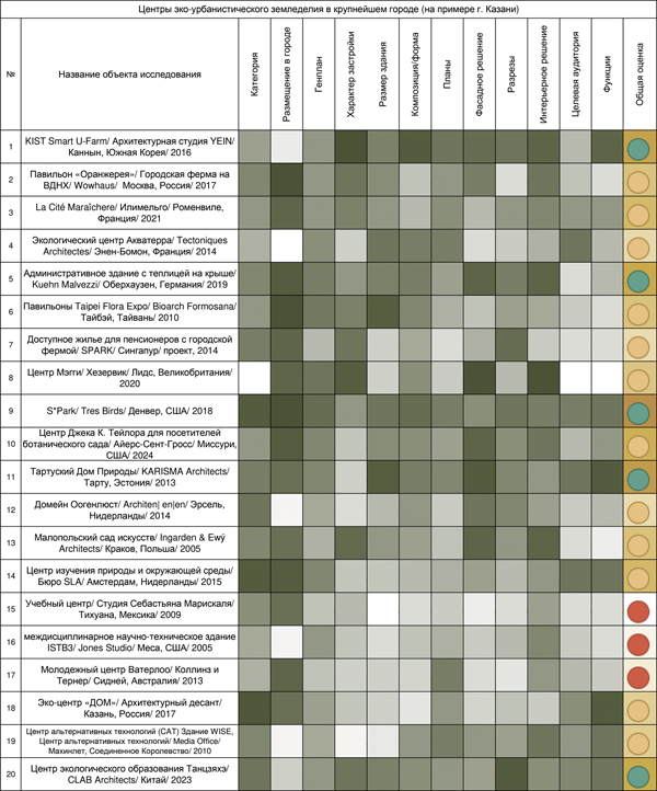 Цель данного исследования – выявление структурных и планировочных моделей центров экоурбанистического земледелия на основе матричного анализа, позволяющего выявить зависимости между типами агропроизводства, пространственными конфигурациями, градостроительными условиями и экологическим потенциалом.