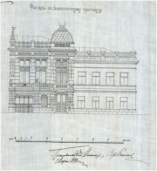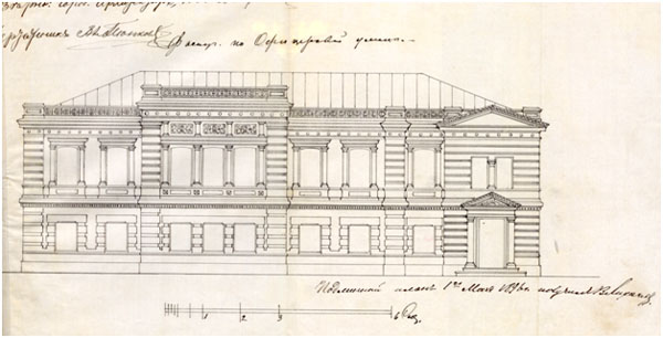 Рис. 7. Проект реконструкции Объекта. Фасад. Архитектор Дютель. 18968