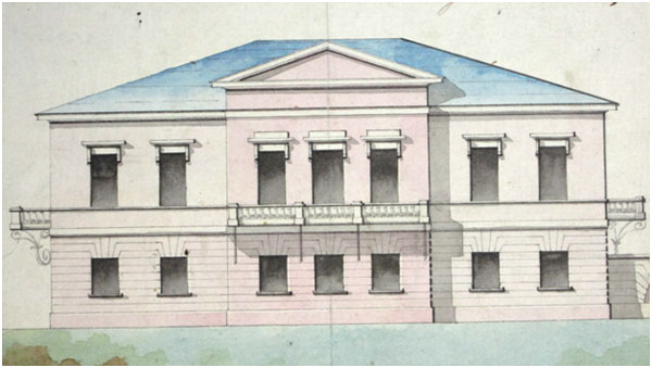 Рис. 4. Проект дома управляющего Верх-Нейвинским заводом. Фасад. 18415