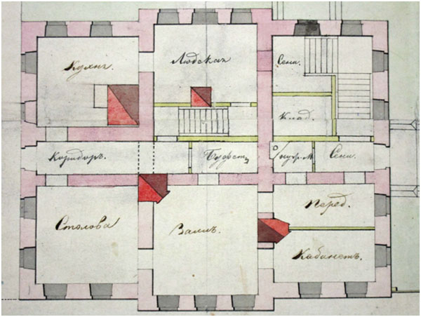 Рис. 5. Проект дома управляющего Верх-Нейвинским заводом. План первого этажа. 18416
