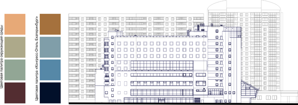Таким образом, можно сказать о грамотном подходе к проектированию нового объекта в сложившейся среде: архитектура здания взаимодействует с окружением, при этом становится акцентом в существующей застройке. Архитектурный объект «Конгресс-отель Екатеринбург» представляет собой пример удачной интеграции с тканью города.