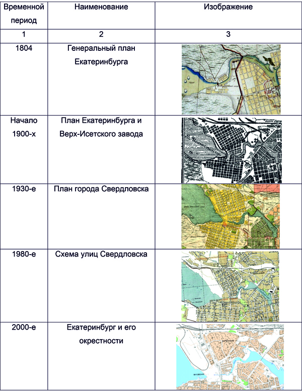 Назначение «Конгресс-отеля Екатеринбург» соответствует этому образу: в нем, как и в туристическом круизе, можно отдохнуть от суеты, познакомиться с гостями города, посетить мероприятия, разнообразить свой отдых, например, игрой в бильярд. Вот только, почему этот «лайнер» оказался здесь? Чем было продиктовано появление такого необычного объекта в районе? Есть ли исторические или градостроительные предпосылки его появления в сформировавшейся среде, жизнь в которой шла своим чередом. Для ответа на этот вопрос был проведен исторический анализ, основанный на изучении карт Екатеринбурга разных периодов (табл. 1).