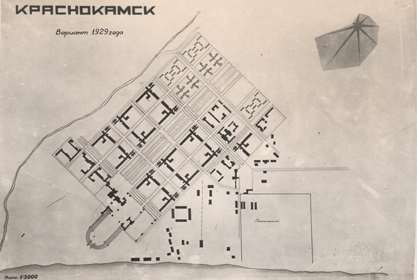 Рис. 3. Планировка рабочего поселка, 1930. Источник: Краснокамский краеведческий музей